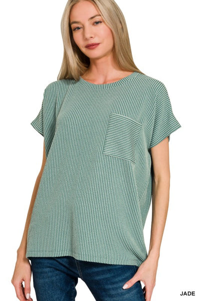 RAISED RIB FRONT POCKET BOXY TOP TOTAL BODY LENGTH: 25", CHEST: 46" approx. - MEASURED FROM SMALL * COLOR MAY VARY SLIGHTLY DUE TO MONITOR RESOLUTION
