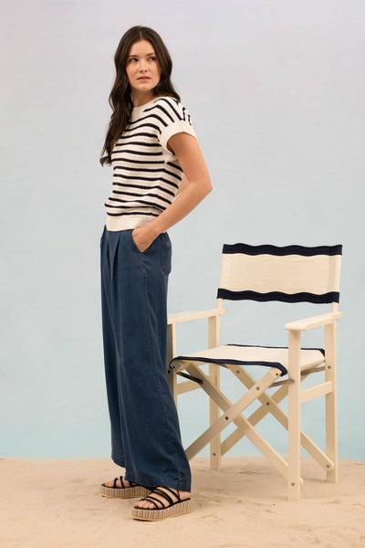STRIPE CREW NECK SHORT SLEEVE KNIT PULLOVER